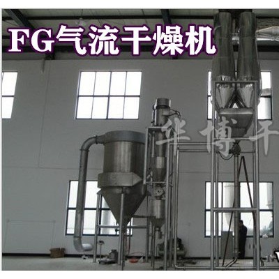 氣流干燥機(jī)是利用高速流動(dòng)的熱氣流使?jié)竦矸蹜腋≡谄渲?,。具有傳熱系?shù)高,傳熱面積大,干燥時(shí)間短等特點(diǎn)。氣流干燥也稱"瞬間干燥"是固體流態(tài)化中稀相輸送在干燥方面的應(yīng)用。該法是使加熱介質(zhì)和待干燥固體顆粒直接接觸,并使待干燥固體顆粒懸浮于流體中,因而兩相接觸面積大,強(qiáng)化了傳熱傳質(zhì)過(guò)程,廣泛用于散狀物料的干燥單元操作。