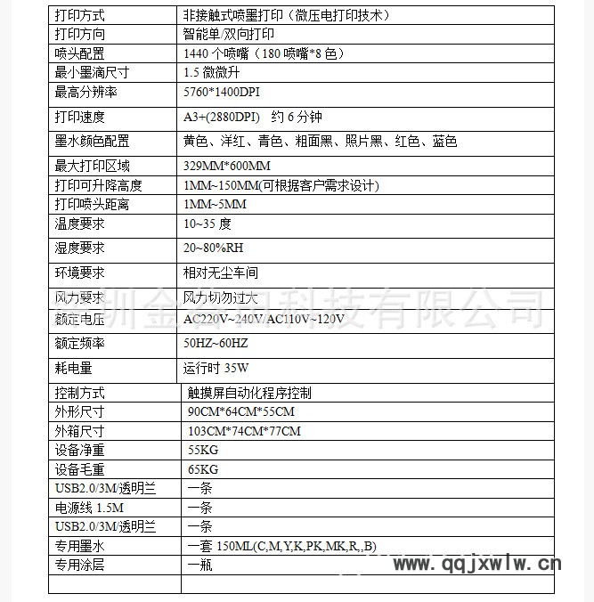 A3平板彩印機技術參數: