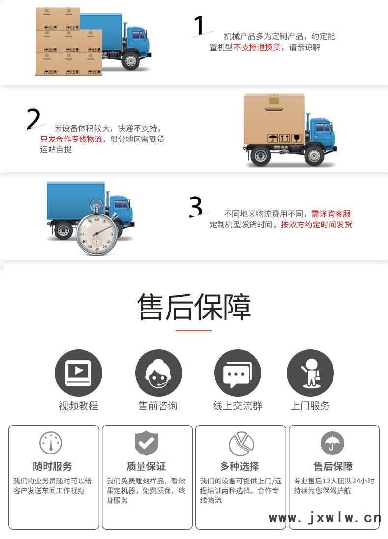 設(shè)備售前,售中,售后均由本司負(fù)責(zé),為確保機器正常適用,請適用本廠家配件,自行更換后果自付;