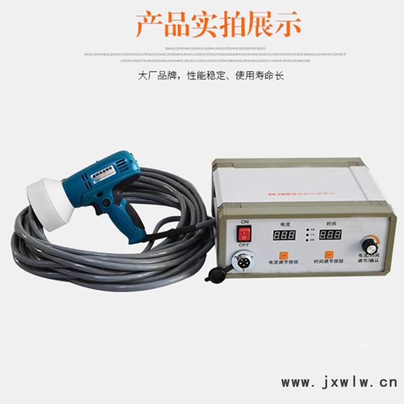 本機(jī)采用電磁感應(yīng)加熱原理,通過非接觸感應(yīng)加熱,使感應(yīng)墊片瞬間產(chǎn)生熱量熔化,牢牢地粘貼在被防水板上,以達(dá)到焊接之目的。