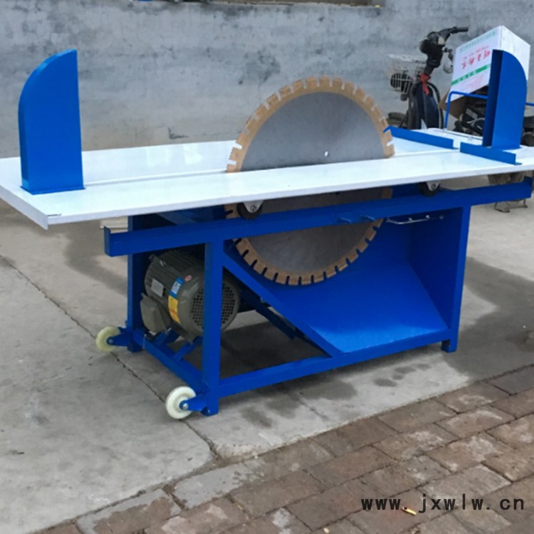 切磚機是一種新型加氣塊切割裝置,實用新型加氣塊切割機能提供一種切割高效率,是安全的加氣塊切割裝置。為實現(xiàn)上述目的,本機采用的設計為:固定支架、圓形盤鋸和工作臺,該工作臺上沒有沿著所述圓形盤鋸鋸齒方向的縱向鋸道,所述的固定支架上方橫向兩側分別設有沿縱向的軌道。本機配備水管,無粉塵飛揚,可室內使用。