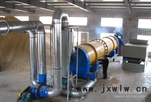 利用蒸汽散熱器散發(fā)的熱量,通過抽風(fēng)風(fēng)機(jī)不斷的吸風(fēng)而產(chǎn)生的一個熱循環(huán)過程,使轉(zhuǎn)筒內(nèi)的物料在旋轉(zhuǎn)的轉(zhuǎn)達(dá)筒內(nèi)不斷正反翻動,而逐漸烘干。