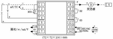 * 報警(O2),報警(O3)用戶可自行組態(tài)為上限報警或下限報警。