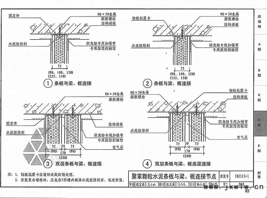 4.2預(yù)制的門、窗框板靠門、窗框一側(cè)應(yīng)設(shè)置鋼預(yù)埋件或木磚,以便與門、窗框固定。也可在施工現(xiàn)場(chǎng)切割制作門、窗框板,單條板的容重不應(yīng)低于800kg/m3,可采用膨脹螺栓與門、窗框固定。應(yīng)根據(jù)門窗洞口大小確定固定位置和螺栓數(shù)量,每側(cè)的固定點(diǎn)應(yīng)少于3處,必須滿足設(shè)計(jì)要求。同事應(yīng)加裝門套,采取加強(qiáng)措施。