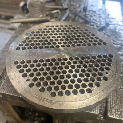 管板的具有的特點(diǎn)是管孔數(shù)量多、密、孔徑小、深、精度和光潔度要求高。 管板法蘭加工的精度,特別是管孔距離和管徑公役、筆直度、光潔度都影響著以上所列化工設(shè)備的組裝和運(yùn)用功用。跟著化工設(shè)備、電站的大型化,其管板直徑也變得逐漸的變大,直徑為4m-5m的管板很常見。大型管板的特色是管孔數(shù)量多、密、孔徑小、深、精度和光潔度要求高。 所用材料:根據(jù)需求用環(huán)境的不同,運(yùn)用不同的材料,一般運(yùn)用Q345R的容器板,比如一二級(jí)能接受壓力的容器,無腐蝕介質(zhì)流通,運(yùn)用碳鋼復(fù)合板即可。遇到強(qiáng)酸,高壓高溫,核能等環(huán)境**需求不銹鋼,16錳,鈦合金等耐腐蝕的材料,新式組成材料的運(yùn)用管板加工的精度,特別是管孔距離和管徑公役、筆直度、光潔度都影響著以上所列化工設(shè)備的組裝和運(yùn)用功用。跟著化工設(shè)備、電站的大型化,其管板直徑也逐漸的變大,直徑為4m-5m的管板很常見。